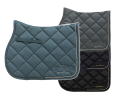 馬の背にフィットするアナトミカルシェイプのゼッケンです。 適度な厚みのフォームが入ったキルティング生地で、吸湿性と速乾性に優れています。 ゴールドの差し色がきれいな刺繍が施された、洗練されたデザインのサドルパッドです。 ベルクロ式のキーパーとガースストラップが付いています。