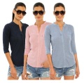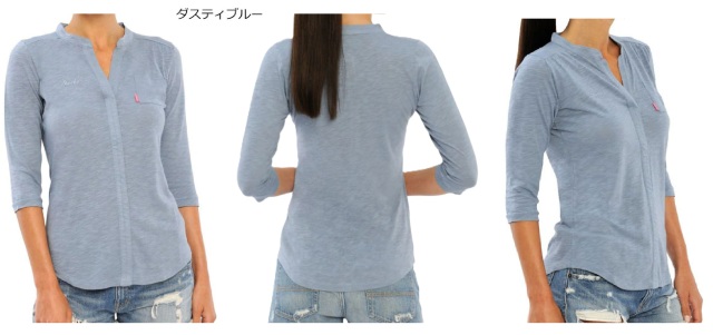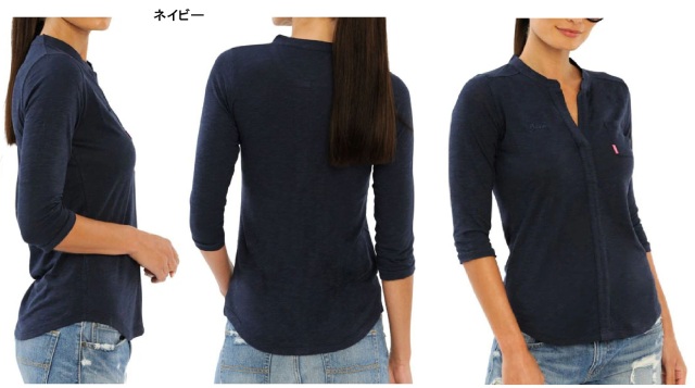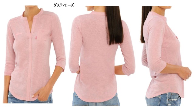 首元を美しく見せるオープンフロントネックの7分袖Tシャツです。