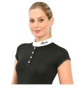Spooks レディースショーシャツ ダリア バックメッシュでとても涼しくスタイリッシュなショーシャツです。 軽くて通気性と伸縮性に富んだ生地がボディに沿ってフィットするスリムタイプ。 襟の刺繍と袖口のエッジングが締まりのある印象で、フェミニンとスポーティーを兼ね備えたハイセンスモデルです。