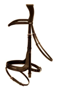 Passier マーカス アーニングIIドイツのジャンピングライダー、M・アーニング氏と共同開発したフックススタイルの水勒頭絡です。 柔らかく裏打ちされた鼻帯の形状は、馬の頬骨および顔面神経への圧力を軽減します。 ヘッドピースは柔らかく裏打ちされており、頭頂部も解剖学的に設計され圧力を軽減します。 最高級のブライドルレザーでできています。 金具は頭絡・手綱ともゴールド色です。※手綱つき