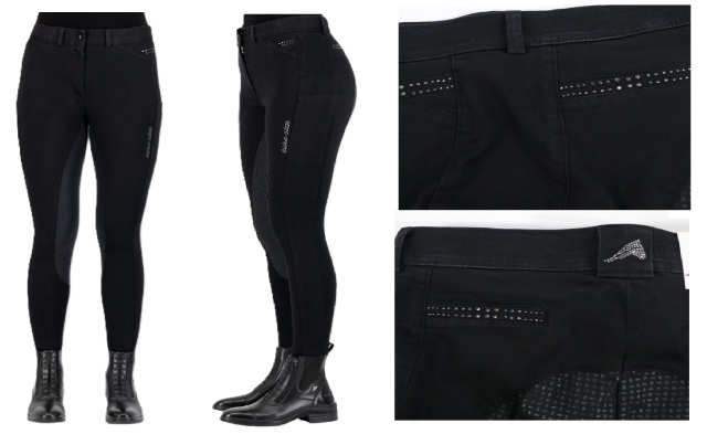 フロントとバックはラインストーンをあしらった飾りポケット仕様で、