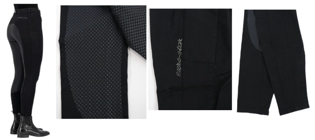 左太腿にはブランドロゴをラインストーンで施し、上品なアクセントに仕上げています。