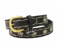 Equinecoutrureジュニアカシーベルト耐久性のあるレザーベルト王冠の刺繍デザイン