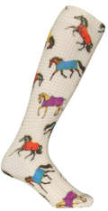 ブーツの履きやすい、薄手で伸縮性の良いソックスです。 滑らかで吸湿発散性に優れています。 馬着を着た馬柄の珍しいデザインのソックスです。