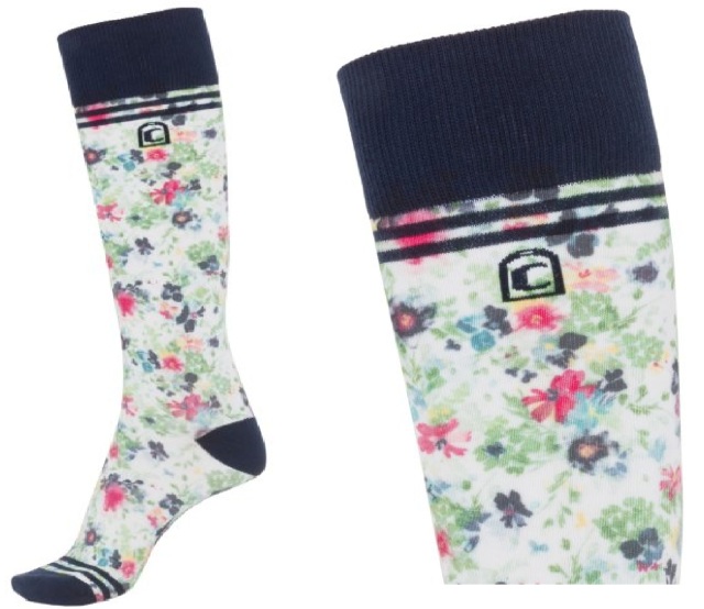 華やかな花柄にダークブルーのあぶみロゴがアクセントとなり、