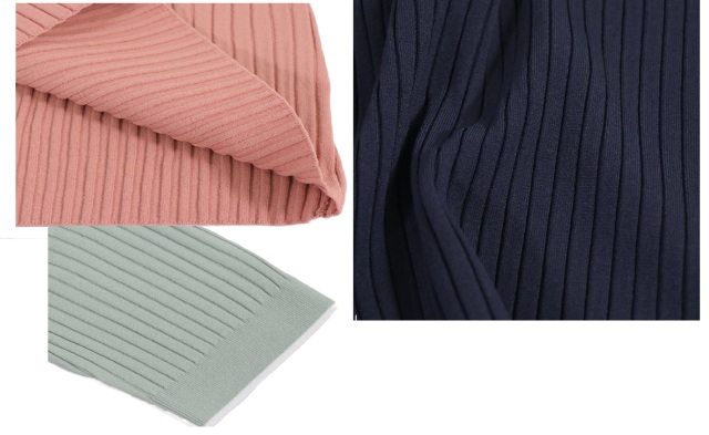 伸縮性のあるリブニット素材を使用し、柔らかく快適な着心地。